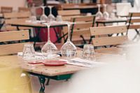 Het is nog vroeg op de dag, maar de Franse terrassen in Colmar zijn al netjes opgedekt. Rond lunchtijd zullen de eerste gasten plaatsnemen op dit typisch Franse terras.