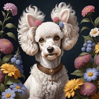 Franse poedel, wit, met bloemen renaissance stijl.
