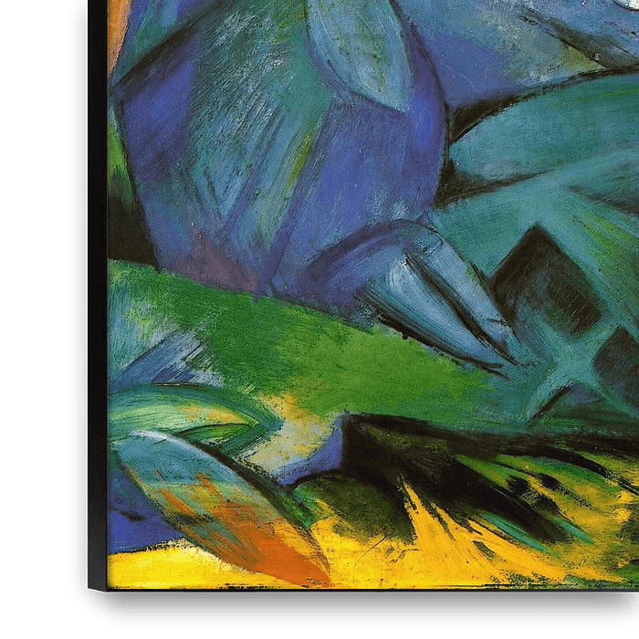 Franz Marc (1880-1916) was een Duitse schilder en medeoprichter van de expressionistische Blue Rider beweging. Hij staat bekend om zijn kleurrijke schilderijen van dieren, vooral paarden, die hij in abstracte vorm afbeeldde. Marc ontwikkelde zijn eigen beeldtaal en gebruikte sterke, felle kleuren om een emotioneel effect te bereiken.