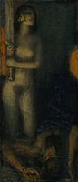 Franz von Stuck (1863-1928) was een belangrijke Duitse symbolist, schilder en beeldhouwer aan het einde van de 19e en het begin van de 20e eeuw. Bekend om zijn symbolistische werken met mythologische en religieuze motieven, combineerde hij elementen van Art Nouveau en Neoclassicisme. Stuck was ook actief als leraar en had een grote invloed op de kunstscène van zijn tijd. Hij richtte de kunstenaarsvereniging "Die Scholle" op en doceerde aan de Kunstacademie van München, waar hij grote invloed uitoefende op de kunstscène van zijn tijd.