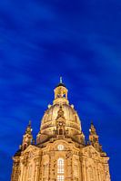 Koepel van de Frauenkirche aan de Neumarkt in Dresden bij nacht, Saksen, Duitsland.