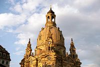 Dresden Saxony Germany Frauenkirche church with dramatic clouds above in the early evening light
