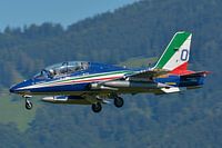 Een toestel van de wereldberoemde Frecce Tricolori uit Italië.