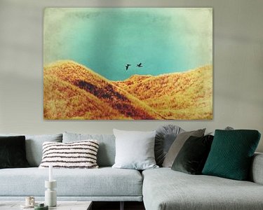Zwei Graugänse fliegen über die Dünen - Nordseeinsel Amrum - Nordfriesland - Composing mit Texturen im Vintage Stil