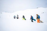 Freeriden in de poedersneeuw in Montafon, Vorarlberg Snowboardgroep