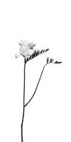 De fresia is een zeer sierlijke en kleurrijke bloem die vooral door haar geur bekoort. Uitzonderlijk decoratief beeld in een minimalistische zwart-wit context. Expressief motief in een helder ontwerp.