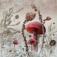 Kleine paddenstoelen zijn verrast door de opkomende kou.
