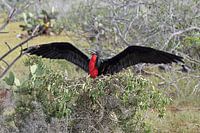 De grote fregatvogel is een zeevogel die onder andere op de Galapagos eilanden broedt. De mannetjes zetten, wanneer zij vrouwtjes het hof willen maken, een zeer grote rode keelzak op. Mannetjes met fellere keelzakken zijn aantrekkelijker voor de vrouwtjes.
