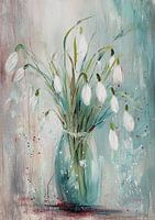 Fresh Blooms - Dit bloemen schilderij toont een elegante vaas met stralende sneeuwklokjes in frisse, lichte kleuren, perfect voor een moderne inrichting en een vrolijke sfeer.