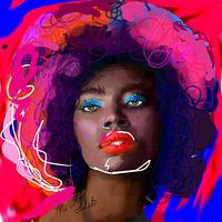 Portret van Afrikaanse vrouw. Deze dame heeft een kleurrijk Afro kapsel. Mooi voor in een modern en kleurrijk interieur. Gemaakt door Nicole Habets