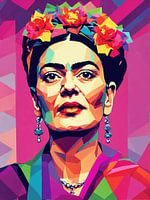 Dit levendige pop-artportret van Frida toont haar iconische gelaatstrekken met felle kleuren en opvallende patronen. Het kunstwerk, geïnspireerd door haar passie en veerkracht, toont haar kenmerkende wenkbrauw en bloemenhoofddeksel en combineert traditionele Mexicaanse motieven met moderne esthetiek. Het energieke ontwerp belichaamt haar geest en artistieke nalatenschap.