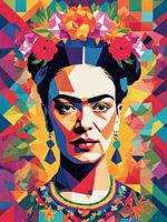 Dit levendige pop-artportret van Frida toont haar iconische gelaatstrekken met felle kleuren en opvallende patronen. Het kunstwerk, geïnspireerd door haar passie en veerkracht, toont haar kenmerkende wenkbrauw en bloemenhoofddeksel en combineert traditionele Mexicaanse motieven met moderne esthetiek. Het energieke ontwerp belichaamt haar geest en artistieke nalatenschap.