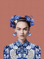 Een eyecathers en iconisch portret van een bijzonder vrouw, Frida. Deze moderne variant is uitgevoerd in een delfts blauwe kleurstelling. Traditioneel en krachtig. Een overdaad aan bloemen maar toch een strak geheel door de blauwe tinten. Ode aan Frida welke nog elke dag mensen inspireert. Dit portret heeft een brick, oud roze achtergrond en geeft een warme look in contrast met het coole blauw. Het oud roze heeft een klein textuur van canvas dus hoe je kunstwerk ook zal laten printen heeft de achtergrond meer diepte en karakter. En zal prachtig staan in een modern, luxe of strak interieur.