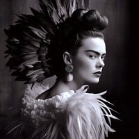 Koop dit portret Frida portret fotografie met veren in zwart wit van Roger VDB op canvas, aluminium dibond, (ingelijste) fotoprint, behang en ArtFrame, op maat geprint in Fine-Art kwaliteit.
