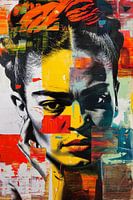 Een portret van de schilderes Frida in abstracte Pop Art stijl.