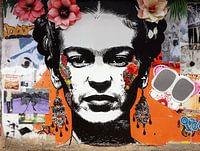 Frida's Urban Dream 2: een iconisch portret met felle kleuren, graffiti en streetstyle vibes. Klassiek meets cool: een explosie van stijl en attitude!