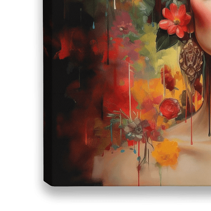 Koop dit bloemen kunstwerk Frida's droom van collageri op canvas, aluminium dibond, (ingelijste) fotoprint, behang en ArtFrame, op maat geprint in Fine-Art kwaliteit.