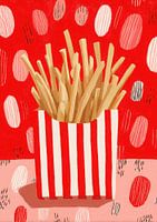 Koop dit Popart kunstwerk Friet in een rood-witte kartonnen doos van Niklas Maximilian op canvas, aluminium dibond, (ingelijste) fotoprint, behang en ArtFrame, op maat geprint in Fine-Art kwaliteit.