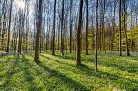 In het voorjaar komen de wilde hyacinten tot bloei in het Hallerbos, samen het ontluiken van de fris groene bladeren van de beuken en een opkomend ochtend zonnetje heerst er een serene sfeer in het bos.