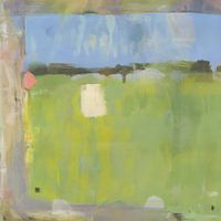 Frisse pastelkleuren abstract. Voornamelijk groene tinten zijn gebruikt om dit abstracte schilderij een lente sfeertje te geven. Appeltjesgroen en aanvullende pastelkleuren. Van dit schilderij wordt je blij als je het ziet, het refereert aan mooi weer, een grasveld en lekker buiten zijn in de lente of zomer.