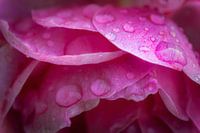 Roze rozenblaadjes, nat van de regendruppels. Het frisse roze samen met het broodnodige vocht om mooi fris te blijven.