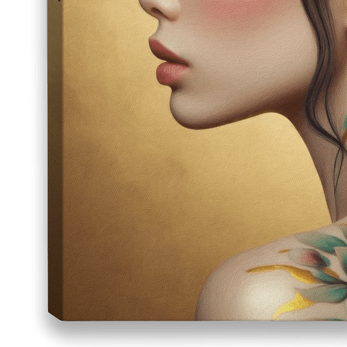 Het portret van een bijzondere vrouw, een zoetwater zeemeermin, met een prachtige tattoo en een koi karper in het haar.