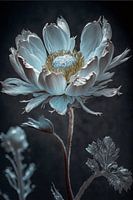 Ontdek een betoverende wereld van contrast en winterse pracht met dit werk, waarin de delicatesse van bloemblaadjes samensmelt met de kille aanraking van ijskristallen. Elk beeld onthult een magisch tafereel, waarin de bloemen lijken te bloeien te midden van een ijskoude gloed, hun stengels en bladeren verankerd in de mysterieuze duisternis.