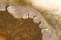 En door de combinatie van doorschijnend en niet doorschijnend ijs en de roestige bodem, krijg je een heel boeiende en abstracte foto.