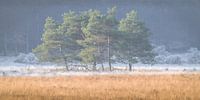 Een sfeervol panoramabeeld van een groep dennen die statig oprijzen in het berijpte winterlandschap van de Terletse Heide. De rijp op het landschap creëert een sprookjesachtige sfeer van stilte en kou. Deze foto vangt de essentie van de Nederlandse winternatuur: minimalistisch, ijzig en betoverend. Perfect voor gebruik in kunstprints of…
