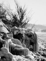 Ice-covered Baltic Sea beach on Darß peninsula, near Ahrenshoop.