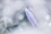 Een krokus die perfect de overgang tussen winter en lente laat zien. Aan de ene kant vorst, aan de andere kant dooit het alweer.