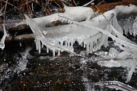IJs dat zich heeft afgezet aan de takken die in de rivier hangen tijdens een vorstperiode (Rio Genil).