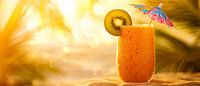 Een verfrissende cocktail, omgeven door warm licht en zachte tropische vibes, ontketent pure vakantiegevoelens. Het fruitige kiwi-accent en de kleurrijke paraplu geven het drankje een speels tintje. Dit levendige beeld brengt een zomerse stemming in de keuken of geeft de eethoek een tropische flair - perfect voor gezellige momenten!