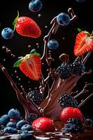 Koop de foto Fruitige chocolade explosie - een smakelijke traktatie! van Poster Art Shop als print op canvas, aluminium dibond, (ingelijste) fotoprint, behang en ArtFrame. Voor jou op maat geprint in Fine-Art kwaliteit.