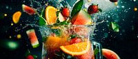 Een sprankelende kleurenpracht van sappig fruit dat in een opvallende glazen kan wordt gedompeld! Fel oranje en stralend groen harmoniëren met verfrissende watermeloen en aardbeien. Deze dynamische compositie brengt levendigheid in elke keuken en zal verrukken tijdens een zomerse brunch of cocktailavond. Een perfect hoogtepunt voor gezellige momenten!