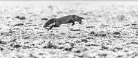 Fuchs Schwarz-Weiß bei der Jagd - Im Sprung fotografiert