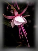 Close-up van een enkele bloem van een rood-witte Fuchsia bloem.