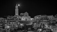 Volle maan boven Matera en de Kathedraal van Matera (Basilica Pontificia Cattedrale di Maria Santissima della Bruna e Sant'Eustachio).