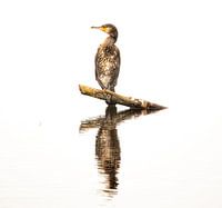 Op een bewolkte dag was het erg rustig bij de fotohut. Alleen de aalschover zat voor de hut. Omdat het zo rustig was viel het me nu pas op dat het licht erg mooi was. En de weerspiegeling in het water was grandioos omdat er geen wind was en er niks anders dan vlak water op de achtergrond te zien is.