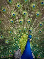 Close up van onze Pauwenhaan met zijn prachtige pauwenveren