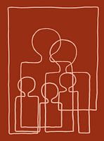 Fullhouse, Red Ochre/Potters Pink komt uit de serie, familie-lijntekeningen. Deze tekening geeft de bijzonder sterke verbondenheid van een familie weer. Deze personen zijn verbonden door één lijn wat de krachtige band nog meer benadrukt.