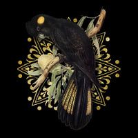 Ik heb een vintage illustratie van deze prachtige vogel digitaal voorzien van een zwarte achtergrond en een gouden mandala.