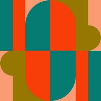 Moderne abstracte geometrische kunst. Geïnspireerd door Bauhaus beweging en kleurrijke jaren 70. Eenvoudige geometrische vormen, gedurfde kleuren, goede vibes! Basic, Retro, Design, Industrieel, Minimalistische interieurstijl.
