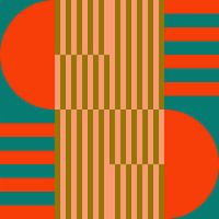 Moderne abstracte geometrische kunst. Geïnspireerd door Bauhaus beweging en kleurrijke jaren 70. Eenvoudige geometrische vormen, gedurfde kleuren, goede vibes! Basic, Retro, Design, Industrieel, Minimalistische interieurstijl.