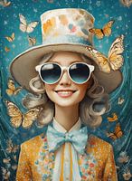 Surrealistisch beeld van meisje met hoge hoed.