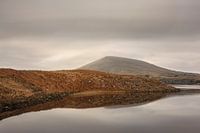 Het verstilde meer Furnace Lough in county Mayo, Ierland, op een windstille en bewolkte dag in de winter