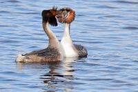 Het meest bekende baltsritueel van de fuut is het naar elkaar toe zwemmen en het maken van heftige kopbewegingen waarbij de wangen worden opzet. Ze gooien hun hals en kop hierbij afwisselend linksom en rechtsom draaiend achterwaarts naar hun lijf. Waarbij ze met hun snavel doen alsof ze zich poetsen, subtiel een veertje pakken en loslaten. Het meest bijzonder baltsritueel is de ’pinguïndans‘ waarbij het mannetje en vrouwtje van elkaar afzwemmen en tegelijkertijd onderduiken. Boven komen met de snavel vol waterplanten die ze aan elkaar aanbieden terwijl ze borst aan borst uit het water oprijzen. Het is meteen hoorbaar als het gebeurt door het water getrappel en opspattend water. Vanaf nu tot met eind april is het baltsen van de futen te zien.