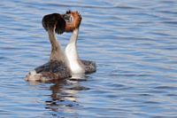 Het meest bekende baltsritueel van de fuut is het naar elkaar toe zwemmen en het maken van heftige kopbewegingen waarbij de wangen worden opzet. Ze gooien hun hals en kop hierbij afwisselend linksom en rechtsom draaiend achterwaarts naar hun lijf. Waarbij ze met hun snavel doen alsof ze zich poetsen, subtiel een veertje pakken en loslaten. Het meest bijzonder baltsritueel is de ’pinguïndans‘ waarbij het mannetje en vrouwtje van elkaar afzwemmen en tegelijkertijd onderduiken. Boven komen met de snavel vol waterplanten die ze aan elkaar aanbieden terwijl ze borst aan borst uit het water oprijzen. Het is meteen hoorbaar als het gebeurt door het water getrappel en opspattend water. Vanaf nu tot met eind april is het baltsen van de futen te zien.