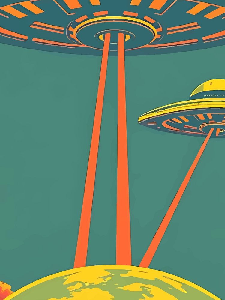 Futuristisch landschap met buitenaardse planeten en hoge structuren in retrostijl
