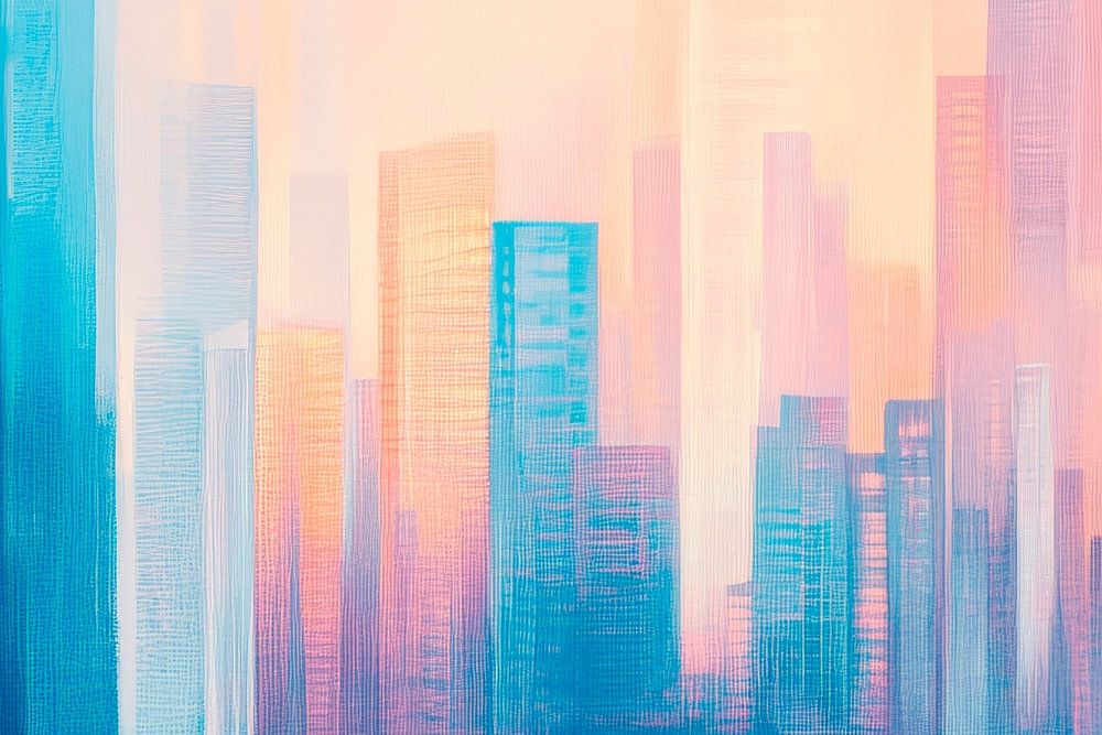 Zachte blauwtinten en zacht oranje smelten samen tot een dromerige skyline die het alledaagse leven verandert in een smeltende fantasie. De harmonieuze balans tussen stedelijkheid en rust creëert een inspirerende sfeer die ideaal is voor woonruimtes of creatieve kantoren, waar het de ruimte vult met energie en sereniteit.